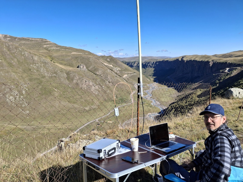 И это на самом деле круто! Во–первых, даже если ты не летаешь, то всё равно это повод высоко забираться! Сам старт гонки был на высоте 2600 метров в урочище Джилы-Су. Но ребятам показалось этого мало и они затащили один из “шлюзов” еще выше — на гору Сирх, где стоит сотовая вышка. Благодаря ему мы принимали данные со всего направления на Малый Бермамыт, где была следующая контрольная точка. Я же растопырил свои антеннки на краю обрыва и смотрел, что вообще у нас получается. Получалось неплохо —через ретрансляции удавалось видеть даже спортсменов, летавших на противоположной стороне горы.